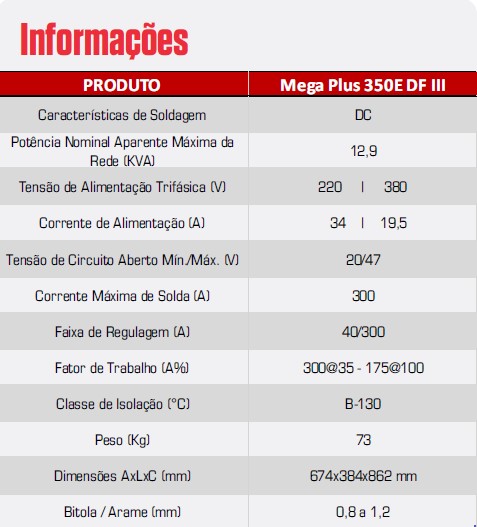 Corrente de Soldagem: 175A a 100% de fator de trabalho